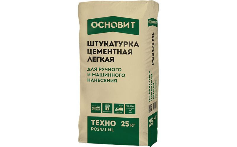 Цементная штукатурка ОСНОВИТ ТЕХНО PC24/1 ML, 25 кг