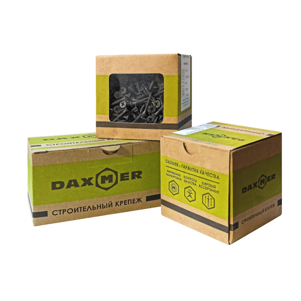 Саморезы ГКМ Daxmer востребованы в процессе проведения ремонтных и отделочных работ. Для их завинчивания применяют шуруповёрты и дрели с крестообразными битами. Продукция поставляется в фирменной упаковке.