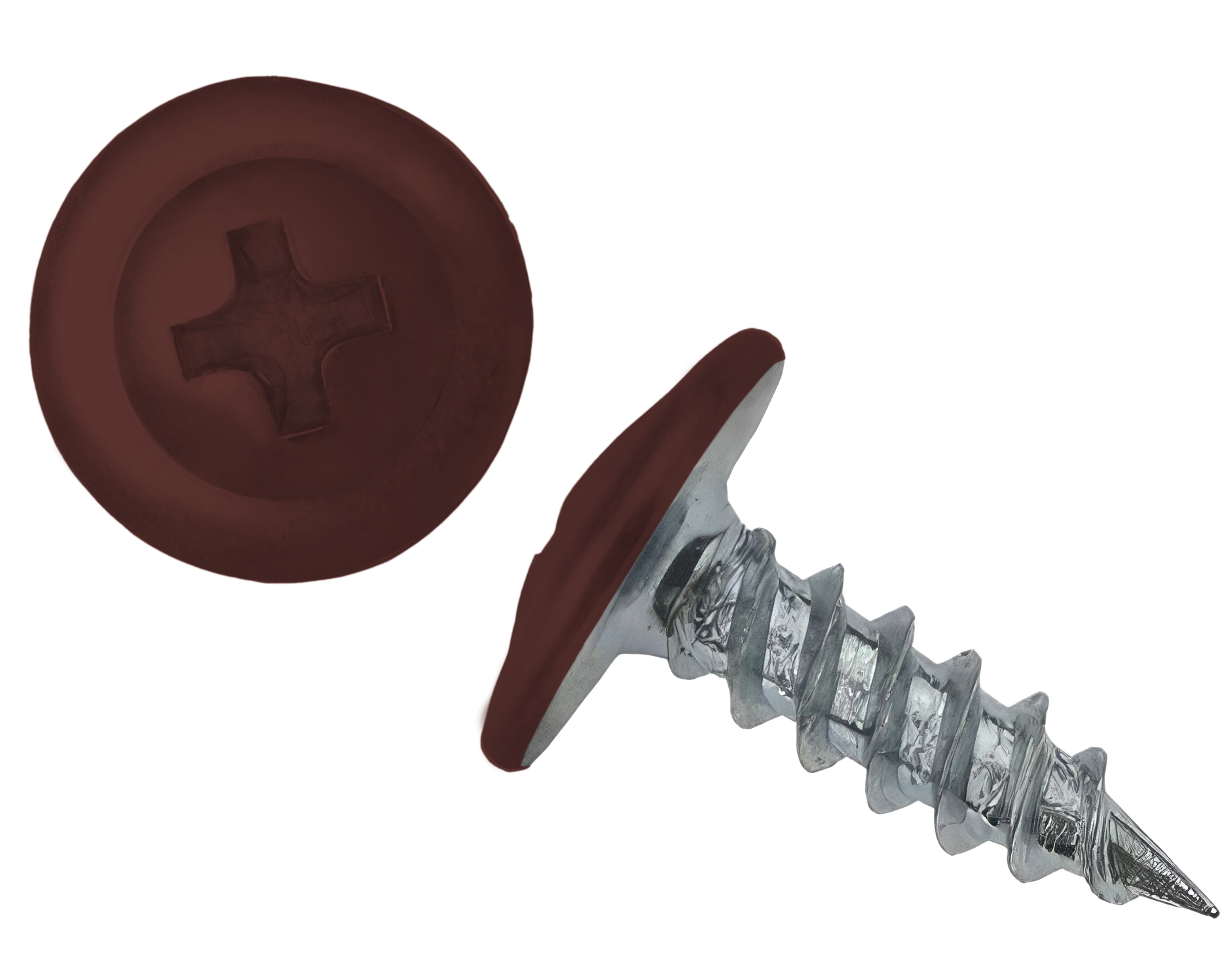 Саморез с напрессованой шайбой (ПШ) - имеют широкую плоскую головку под крестовидную биту (PH2), которая одновременно выполняет роль шайбы. Наконечник оцинкованный - острый.