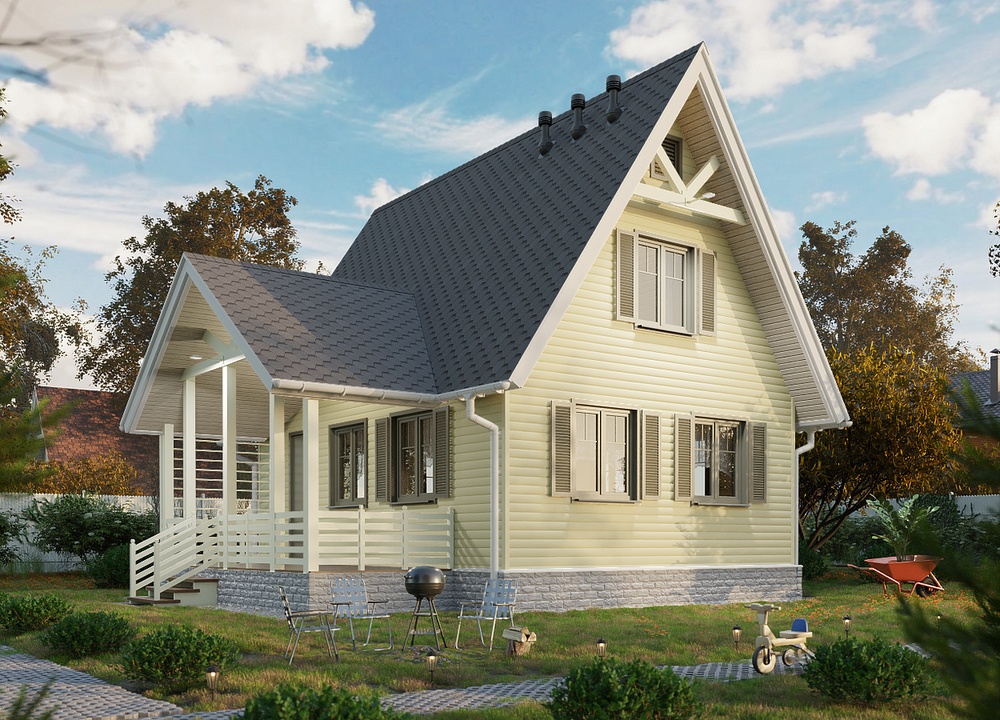 Сайдинг цвета спелого банана подходит для фасадов любой сложности и отлично показывает себя в непростых климатических условиях - не теряет насыщенности, не желтеет. Оттенок особенно красив в классических сочетаниях со светлыми аксессуарами и более темной кровлей.